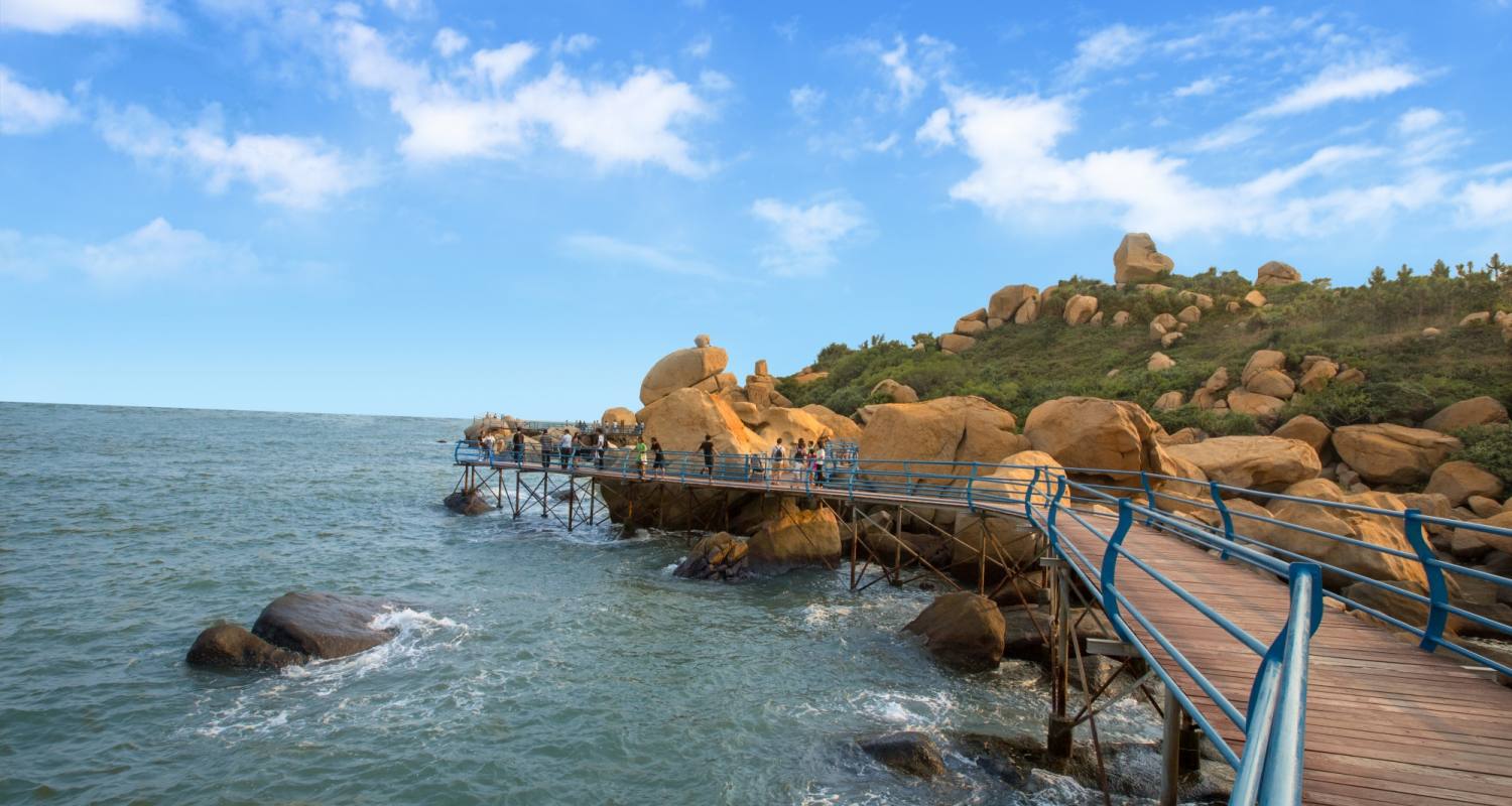 这里更被称为南中国海上石林。海岸线全长6000多米,拥有600多亩独特的自然奇石林,“五湾五山”之众多景点星罗棋布。置身半岛海景,漫步3000多米环岛观光木栈道,观赏官帽石、佛脚石、千年博弈、灵兔望月、镇海神狮等鬼斧神工的奇礁怪石,引发着天马行空的想象力。